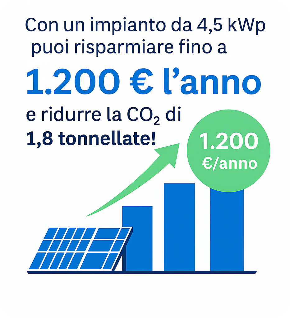Risparmia fino a 1.200 € all’anno con un impianto fotovoltaico installato da professionisti certificati.